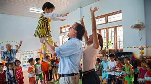 | US veteran John Abbey and his daughter visit a kindergarten in Quang Tri |