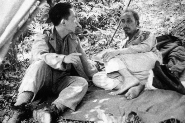 President Ho Chi Minh and General Vo Nguyen Giap (left) taking a rest on their way to the border campaign in 1950 |