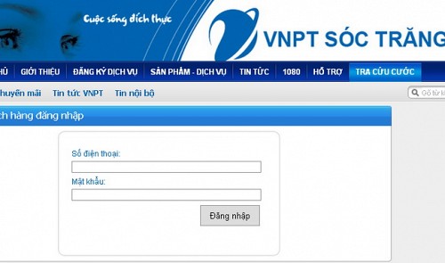 | The login section on the VNPT Soc Trang website is seen in this screenshot taken in Ho Chi Minh City on March 16, 2015. |